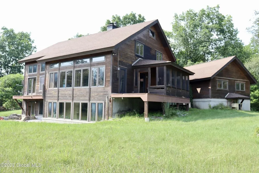 53.7 acres contains 2 homes and an 8-acre Maple Sugar Bush. First home built 1980, solar connected and on the grid, 1344 sq feet, 3 bedrooms, 1 full bath, large covered patio, interior 75% remolding completed. Needs kitchen, bathroom and interior trim finishing. Large 40 X 60 barn with 2009 metal roof. Second home built 2008, Completely ''Off Grid'' private setting, 2664 sq ft 3 bedrooms 3.5 baths log style home. Bamboo & cork flooring, custom bathrooms. Spectacular wood interior, open field view. Solar systems owned not leased. Second home needs solar battery system replacement, generator system not operational, propane used for cooking, hot water and dryer appliances. 48 Hour Contingency