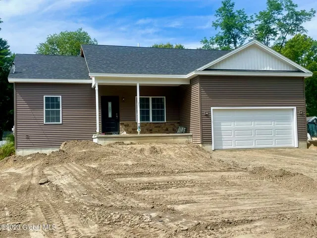 Under Construction!! APPROX 30 DAYS TILL COMPLETION! 3 bedroom 2 bath ranch situated on sprawling .81 acre lot in quiet area. Beautiful curb appeal w stone accents, carriage overhead garage door & low maintenance vinyl siding. Interior w open floor plan, living dining kitchen combo w vaulted ceiling, easy clean laminate hardwood floors, modern white kitchen w granite tops & stainless steel appliances. primary bedroom w vaulted ceiling, spacious closet & private bath. 2 additional good sized bedrooms an 2nd full bath. 1st floor laundry. Full basement w egress can be finished for additional space. 2 car attached garage, paved drive & central air are just a few of the features that make this new build a must see!!! Don't miss out!