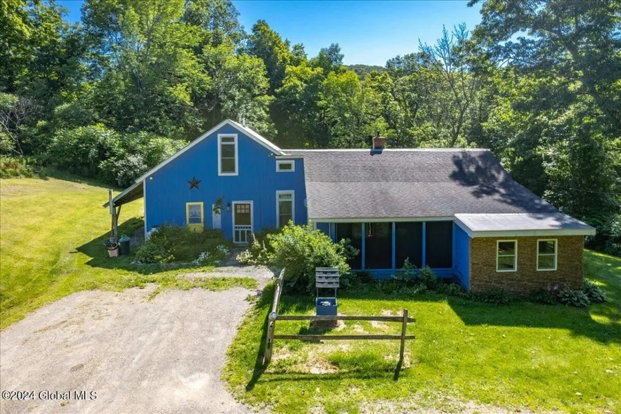 This picturesque home is nestled on 3 expansive acres blending modern comforts with rustic charm. It features distinctive yellow pine floors, and an updated kitchen featuring sleek countertops and state of the art appliances. Large windows frame breathtaking views of the surrounding landscape, flooding the rooms with natural light throughout the day. The property boasts 3 comfortable sized bedrooms and one and half bathrooms. Outside the property unfolds to a peaceful retreat, with manicured gardens and lush greenery ideal for relaxing or entertaining. This home on 3 acres harmonizes modern amenities with natural beauty, offering a truly unique living experience, book your showing today!