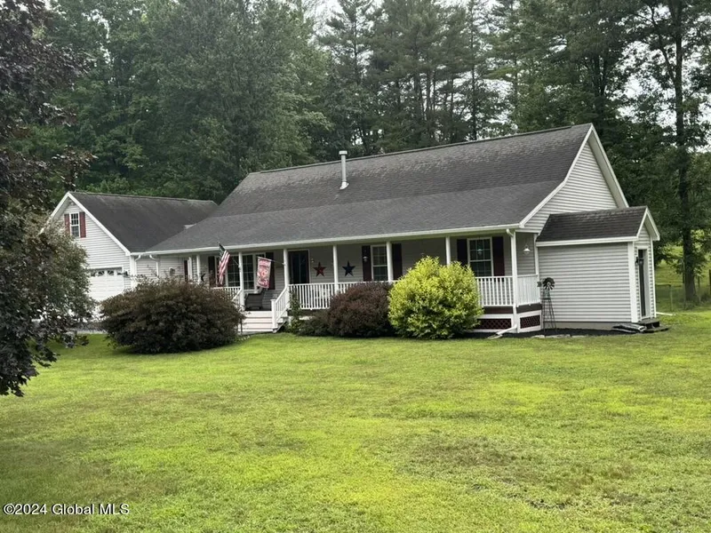 Beautifully kept ranch home in a desirable neighborhood just off Rt 29. Relax on the covered front porch or on the back porch. When it gets cooler you can enjoy the custom stone fireplace with gas insert. Large kitchen with lots of storage an counter space. Updated primary bath with custom tile shower. Maple hardwood floors throughout, tile in the kitchen and baths. Kitchen, Dining area and Family Room has a cathedral ceiling. Fenced in back yard. The oversized garage has access to unfinished room above which is approximately 330 SF. Town access to the Battenkill across the street.