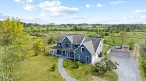 Experience tranquil living in this stunning energy-efficient ICF (Insulated Concrete Form) home set on 9.9 scenic acres, complete with a private pond and breathtaking views! Grand two-story foyer featuring an elegant staircase, large living room w fireplace, formal dining room complements the open kitchen w butcher block island, bedroom/ den, full bath & laundry/mud room all on 1st floor. 2nd floor consists of Primary ensuite w private bath & adjacent bedroom transformed into a walk-in closet. 2 additional bedrooms, an office, & large bonus room! Basement is mostly finished with a gym and den area. Relax on the back deck, surrounded by nature and wildlife! 2-car garage, basketball court & 2 sheds. Don't miss the chance to make this exceptional property your Home!