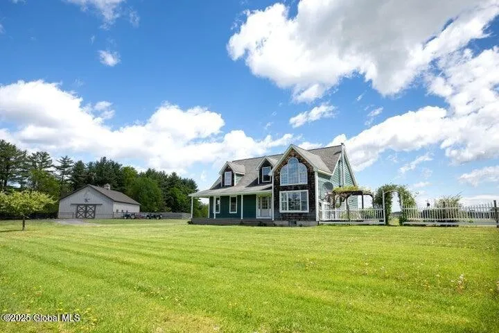 Exceptional gentleman's horse farm on 54 breathtaking acres! This meticulously maintained property features a 36' x 72' Morton barn with 8 stalls, a hay loft, and a workshop, all serviced by underground utilities and automatic water fillers for both the barn and run-in shed. Equestrians will this property, ideal for training, boarding, or riding lessons.Perched on a hillside, the 3-4 bedroom home offers panoramic views and an inviting, open layout. After a day with the horses, relax in the inground pool, surrounded by lush gardens. A rare opportunity to own a turnkey equestrian estate just minutes from Saratoga! Great Airbnb numbers for the past few years!