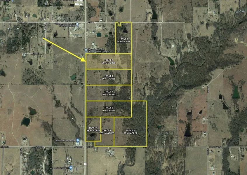 Tracts 2, 3, 4, 5 are each 30 +/- acres and are excellent multi-use type properties whether your goals are commercial development, real estate development, a new country home, or simply a place to start or grow a cattle and hay producing operation. Located right off of Highway 75, this property has approximately 675 feet of highway frontage per tract. The property is only 1 mile outside of Bartlesville city limits in the Bartlesville School District. Whether bought individually ...