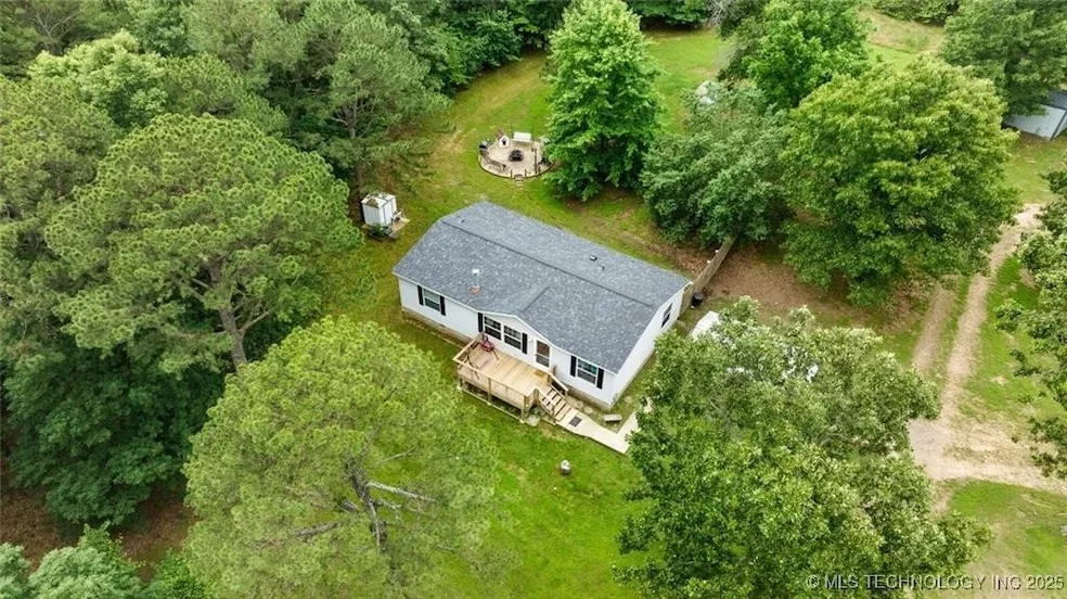 38 ac mol of private secluded paradise for anyone wanting to have their own space, hidden from the world, come enjoy all that nature has to offer! This is a beautiful wooded with open space where the doublewide on permanent foundation - title is surrendered - WILL QUALIFY FOR ANY TYPE OF LOAN (OR SHOULD) 3/2 (all electric) split floor plan with open space and a wood burning stove/heater! Enjoy the winter months around the fire while the outdoors will offer a nice setting to enjoy on your front/back deck, set up for entertaining! The property has a storm shelter, small outbuilding, entertainment patio area, lean-to and is ready for your family to move in! Enjoy the beautiful Adair County, OK! Not too far from the lake! *** Great option for a weekend get-away or hunting property - another option could be RV PARK?? AIRBNB?? who knows opportunities are endless!