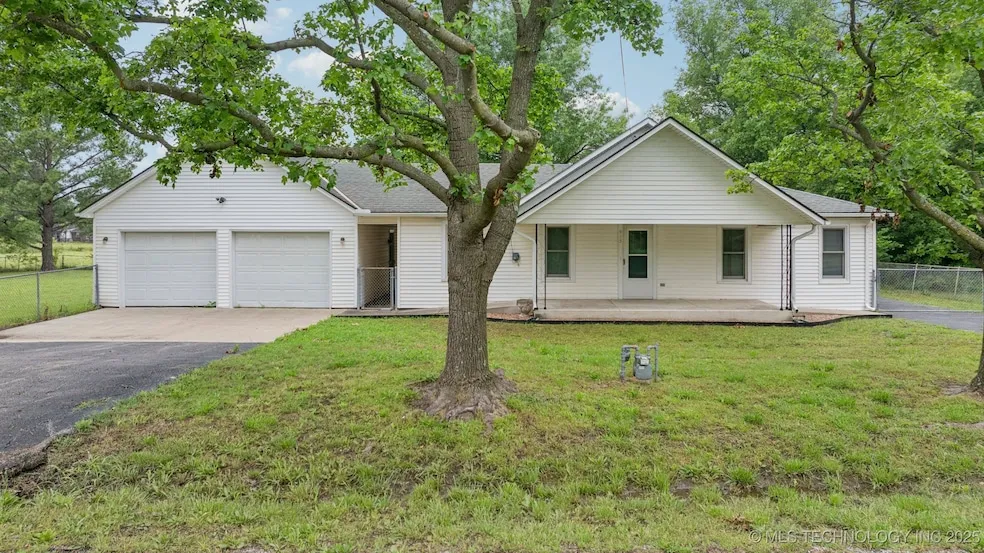In-town acreage with endless potential! Sitting on approximately 1.79 acres m/l per tax records in Dewey, this 2-bedroom, 2-bath home features a spacious layout with a large living area, generous dining space, and oversized utility room. This one will be sold AS-IS with the seller doing no repairs or replacements so FHA or VA financing will not be an option. Exterior highlights include low-maintenance vinyl siding, vinyl replacement windows, a charming covered front porch, and a covered back patio ideal for relaxing or entertaining. The property also features two 2-car detached garages, a carport, and multiple outbuildings for storage, hobbies, or workshop use. There s even a storm shelter, vintage well, and a mix of cleared land and mature trees perfect for gardening, small-scale farming, or simply enjoying the privacy and space. Whether you're looking to invest, renovate, or settle ...