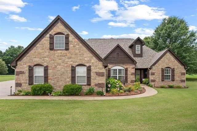The home includes a spacious 3-car garage, featuring a drive-through bay for added convenience and a standing storm shelter for peace of mind during Oklahoma weather.