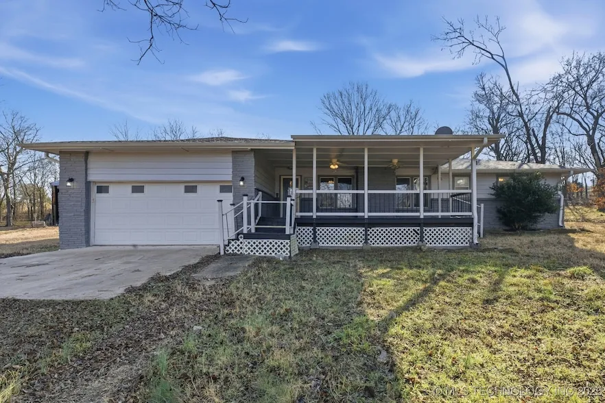 Updated home offers 3 bedrooms, 2 bathrooms, and a 2-car garage on 4.18 acres m/l, complete with a welcoming covered front porch and a bright sunroom perfect for relaxing year-round. Enjoy two cozy fireplaces and stylish 2022 updates including new flooring, kitchen countertops, modern appliances, and refreshed bathrooms,all designed for comfort and easy living. Step outside to take in stunning Oklahoma sunsets, a tranquil pond, and mature pecan trees that frame the property with natural beauty. Deer and other wildlife are frequent visitors, offering a serene country feel right from your backyard. Bring your RV or hobbies,this property also includes a 16x40 RV storage building for all your extra space needs.