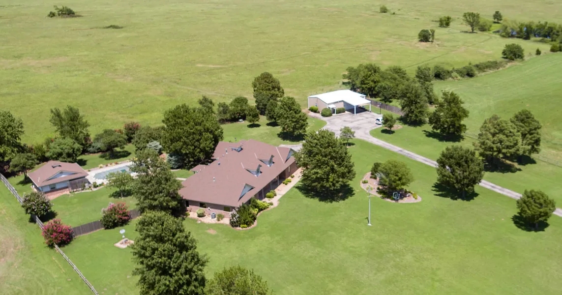 This is one has it all! 4 bedrooms, 3 bathrooms, 2 attached car garage, 3 Living Areas, dual fireplace. Updated kitchen with granite center island. Huge master bedroom suite with over sized closet. Gated paved entryway. In-ground fiberglass pool and Pool house with Living Area, sink, & half a bath. Indoor safe room and a 30 X 40 shop with concrete floor, office space, 220 electric, Electric Overhead Door. Separate 10 X 23 building and RV pad with power.
