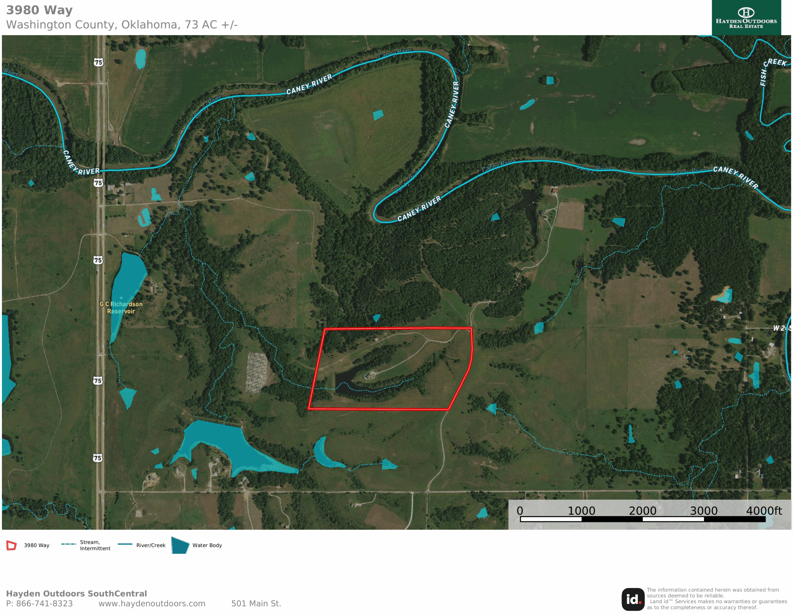 The lake is great for paddleboarding, fishing for large-mouth bass, or ziplining for the more adventurous. The acreage has been managed for deer and quail and serves as a natural corridor for deer to the Caney River. The lake serves as a winter layover for migrating waterfowl. The landscaping includes mature trees and shrubs, and the center island bed is planted with wildflowers for pollinators and butterflies.