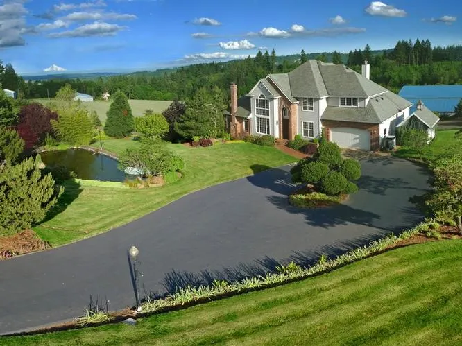 Gorgeous 27+ acre estate! Landscaped park-like setting with pond and amazing Mt. Hood and city light views! Peaceful private setting just 1 ½ miles to 99W. Grand exterior with Herringbone brick walkway to brick porch with brick planters. Spacious 4200 Sq Ft floor plan on 3 Levels with 4 bedrooms and 3.5 baths. Great for entertaining! Elegant vaulted living room with wood burning fireplace, Oak panels, built-ins, bay window and hardwood floor. Kitchen with large cook island, nook, Granite counters, hardwood floor, built-in oven and pocket door to dining room with coffered ceiling, wainscoting and hardwood floor. English style pantry with cupboards and drawers, sink, wood counters and glass door. Family room with cozy wood stove, surround sound and deck access. Master suite with rope lighting in recessed ceiling, gas fireplace with mantel and private bath with jacuzzi tub, tile counters an...