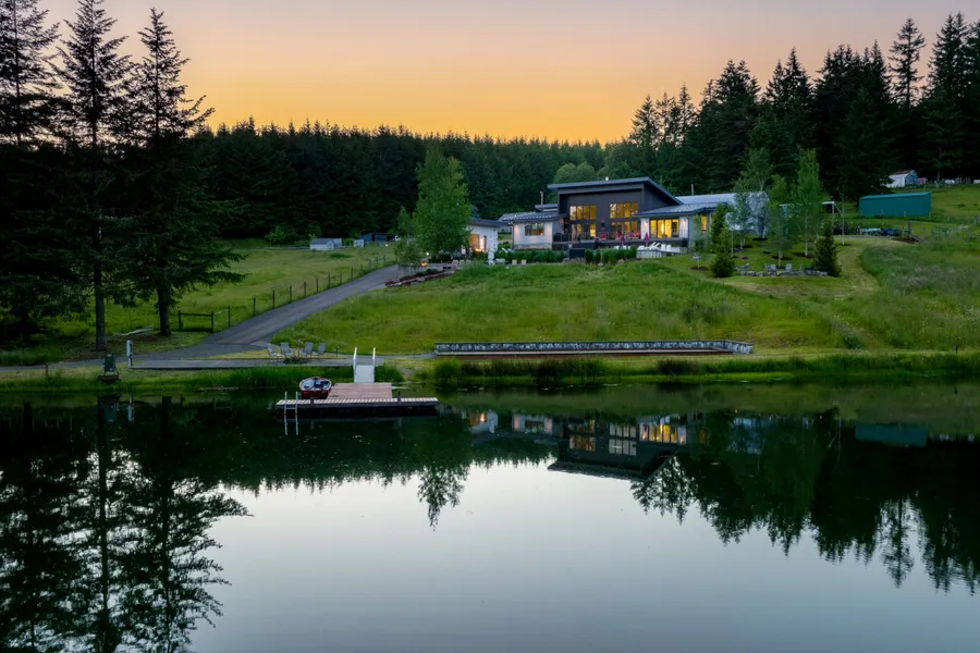 Escape to this one-of-a-kind oasis! Only 30 minutes from downtown Portland, this estate is a dream come true. The property features a private lake great for swimming, kayaking, and fishing. The 72 acres of timberland offers miles of hiking and ATV trails. The modern home will take your breath away with the high-end finishes and custom features throughout. Enjoy the beautifully restored 6200 sq. ft blimp hangar featuring a workshop and full bar! The original 2200 sq. foot home has been permitted as an art studio and can serve as guest quarters. There are large pastures, a custom pool & pool house, multiple fire pits, and patios. Geothermal heat pumps, 800 AMPS of power, irrigation water rights, a backup generator, an electric gate and so much more! The photos don't do it justice. You have to see it to believe it!