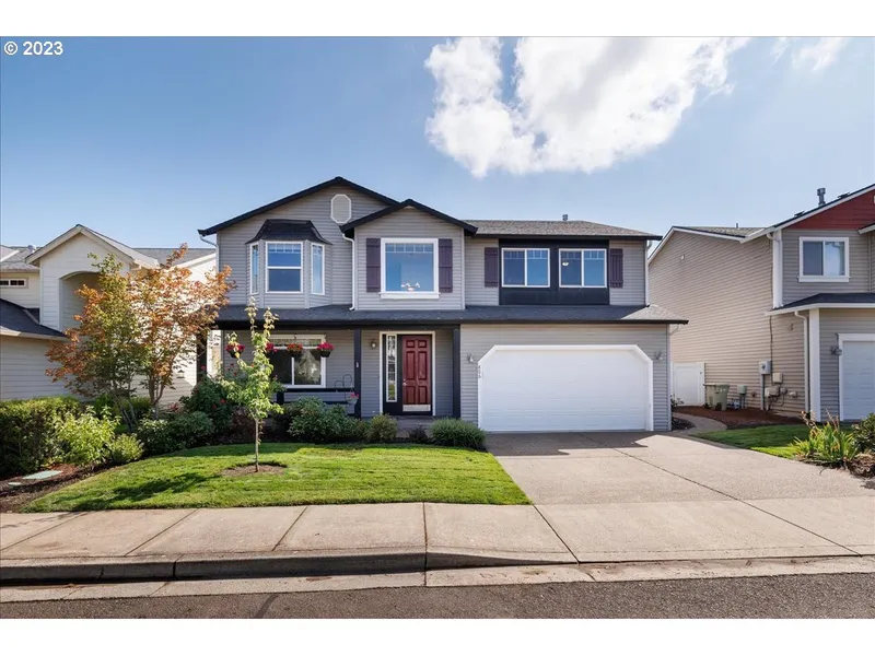 This move-in-ready traditional-style home in Hobbs Farm has loads of appeal and space. An open floor plan with 9ft ceilings, a large family room, formal dining/living room offers entertaining possibilities. Open kitchen with granite counters, eat-in bar, and pantry with custom shelving. Large owner's suite with double walk-in closets and separate sitting area. A huge second-floor bonus room could be a bedroom, office, or play/exercise area. Upstairs laundry room, AC, new garage doors, new carpet, fresh interior paint. A private, fully-fenced, low-maintenance backyard with a covered trex deck and flagstone path leads to space for your future firepit. Walking distance to the neighborhood park. Short commute to Nike, Intel, high-tech/Hillsboro.