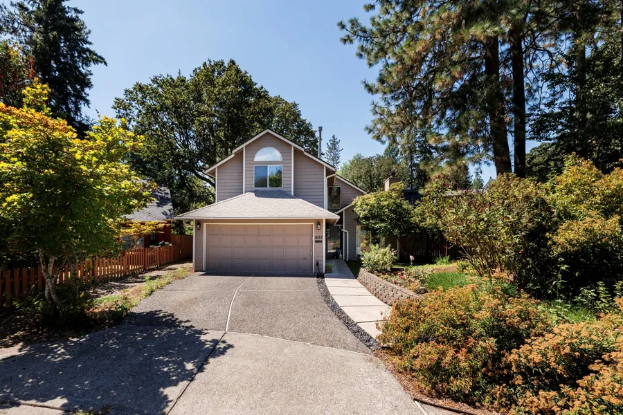 Your Lucky Break! Back on the Market and getting a new roof! Vaulted ceilings + cozy wood-burning fireplace = instant charm in this gem! Bright open kitchen with solid counters, bar seating & appliances included flows into airy living space made for entertaining. Step out to a party-ready deck with gazebo, fenced area & berry bushes. Upstairs, the vaulted primary suite shines with dual sinks, walk-in closet & skylights. House has a newer furnace and AC replaced in 2022. Trails, parks & forest just out the back gate'your own slice of PNW living!