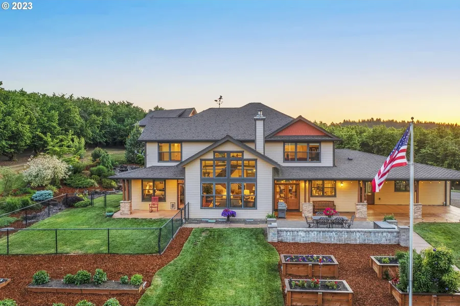Country Living Compound. Offers East Facing Expansive Mountain and Valley Views. Glorious Sunrises! Rare Opportunity to Acquire 38 Rolling Acres, 33 Acres in Mature Barcelona Hazelnuts with 2 Legal Homes, Plus 750 SF Apartment. 4000 SF Main Home Provides Primary Bedroom on the Main, with Main Level Living, 4200 SF 2nd Residence, Currently Configured as a Spacious Duplex. Delightful Gardening Cottage or Tiny House and 30 X 50 Barn for Workshop and Storage. Tons of Room for Hobbies and Play. Gorgeous Landscape to Enjoy Outdoor Living, Gardening and Entertaining in Wonderful Privacy. Moments to Downtown Forest Groves Grand Lodge for Fine Dining, Groceries, Tasting Rooms, Shops and Pacific University.