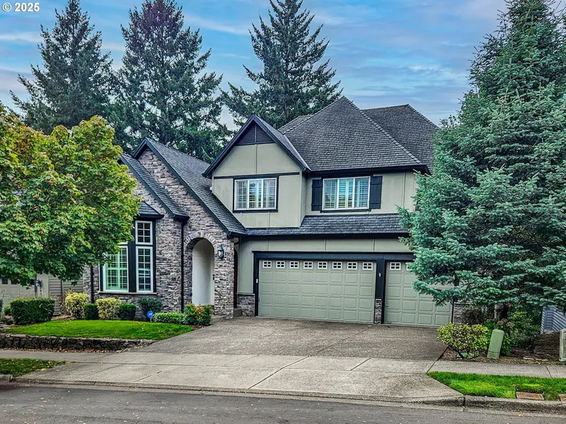 Welcome to 14992 SW Lookout Drive in Tigard's desirable Arbor Summit community on Bull Mountain. This beautifully maintained 3,154 sq. ft. home offers 4 bedrooms, 3 full baths, plus a main-level den that could serve as a fifth bedroom with an adjacent full bath. A marble entry leads to a warm and inviting interior featuring a formal dining room with wainscoting, a living room with a bay window and plantation shutters, and a comfortable family room with a gas fireplace and built-ins. The kitchen is ideal for entertaining, complete with hardwood floors, granite countertops, a cook island, stainless steel appliances, a butler's pantry, and a light-filled eating area that opens to a spacious covered deck overlooking the wooded backyard. Upstairs, the luxurious primary suite offers a coffered ceiling, spa-like bath with tile floors and counters, a soaking tub, separate shower, and a large wal...