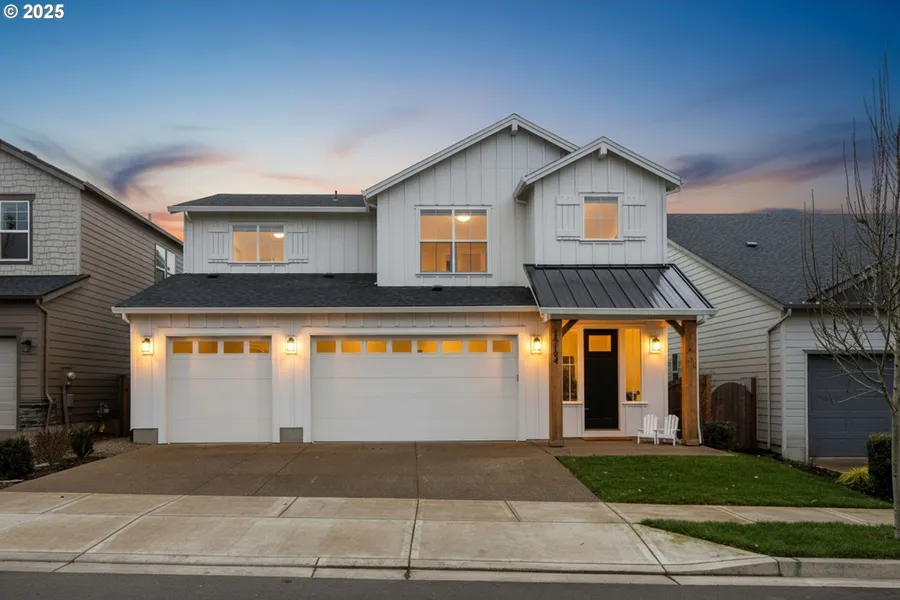 Incredible value and possibly the most spectacular and protected view of any luxury home in River Terrace Crossing! This was the model home for the development with too many upgrades to list! Built by award-winning Stonebridge Homes, this home offers a perfect blend of modern design with an open floor plan and feels brand new! The main level is light and bright with a cozy gas fireplace, luxury vinyl plank flooring, high ceilings and elevated finishes throughout including upgraded Mission shaker style cabinetry and more. The gourmet kitchen is a chef's dream with a premium Verona dual fuel free-standing range and other commercial-style appliances including a built-in microwave, upgraded chimney hood vent, quartz countertops, pantry, large island with eating bar and decorator lighting. There's also a full bedroom and bathroom on the main floor that's perfect for guests, multi-generational living, nursery or home office. Upstairs, the expansive primary suite with high ceilings is your own private oasis with an ensuite bath, luxurious soaking tub, walk-in closet, wall-to-wall carpet and spectacular view! 3 other spacious bedrooms mean there's space for everyone and make this home live large. Outdoor entertaining is effortless with a huge 21'x13' covered deck and a fully-landscaped, fenced backyard. This Earth Advantage-certified home is highly energy efficient with central A/C and nest thermostats, tankless hot water heater, Ring video doorbell system, plus an oversized 3-car garage with plenty of storage! And the 220V outlet on the lower patio is a major upgrade that can power a jacuzzi or swim spa. Located on a finished block with no more new construction on neighboring houses and multiple neighborhood parks and walking trails nearby, this one truly has it all and is priced to sell!