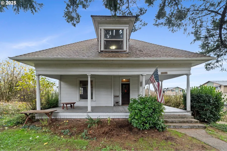 Country living within city limits! Nestled on a generous 1.08-acre lot, this charming 5-bedroom, 2-bath farmhouse offers timeless character, modern comfort, and exciting future potential. Step inside to discover a warm, inviting layout that supports main-level living with a large kitchen and breakfast nook, formal dining room, living room, family room, bedroom, and full bath. Upstairs, you'll find the primary suite, three additional bedrooms, a second full bath, and a cozy sitting area-ideal for a home office, reading nook, or play space. Enjoy year-round comfort with a heat pump, and relax by the pellet stove on cool winter days. The basement provides ample room for storage or a workshop, while the detached garage, complete with its own electrical panel, offers flexible space for vehicles, hobbies, or equipment. Outside, experience the beauty of country living on this premium lot featuring mature pear, plum, apple, walnut, and fig trees-something to enjoy in every season. The on-site irrigation well keeps your landscaping lush and vibrant year-round. Located near the Banks-Vernonia Trail for biking, hiking, and equestrian recreation-and with easy access to Portland, Nike, Intel, and the Oregon Coast-this property offers the perfect balance of rural charm and city convenience. Be sure to inquire with the City of Banks about the flexible zoning and development potential of this exceptional property-truly a rare find combining lifestyle, location, and opportunity.