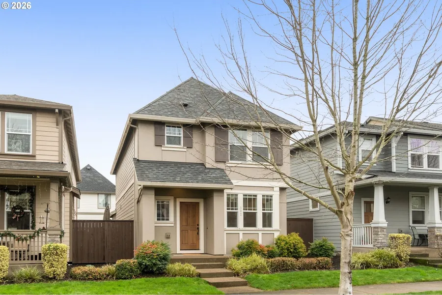 OPEN SUNDAY 1/18 11-2! Impeccably well maintained 2-level home in the lovely Meadows at Baseline Woods community! Main level is open and spacious with high ceilings, beautiful hardwood floors, and gas fireplace along with plenty of windows allowing natural lighting. Kitchen comes with granite counters, custom backsplash, and stainless-steel gas appliances. Dining area with slider door to patio is great for BBQs. Upstairs, the primary bedroom is generously sized, featuring attached bathroom with double sinks, walk-in shower, and walk-in closet. Also, on upper, two additional bedrooms, hall bathroom, and space for washer/dryer hookup. Attached two-car garage access from alley behind home; ample street parking available for visitors. Great location minutes to Streets of Tanasbourne for shopping and dining, also close to max station, Intel campuses, Nike, and Costco!