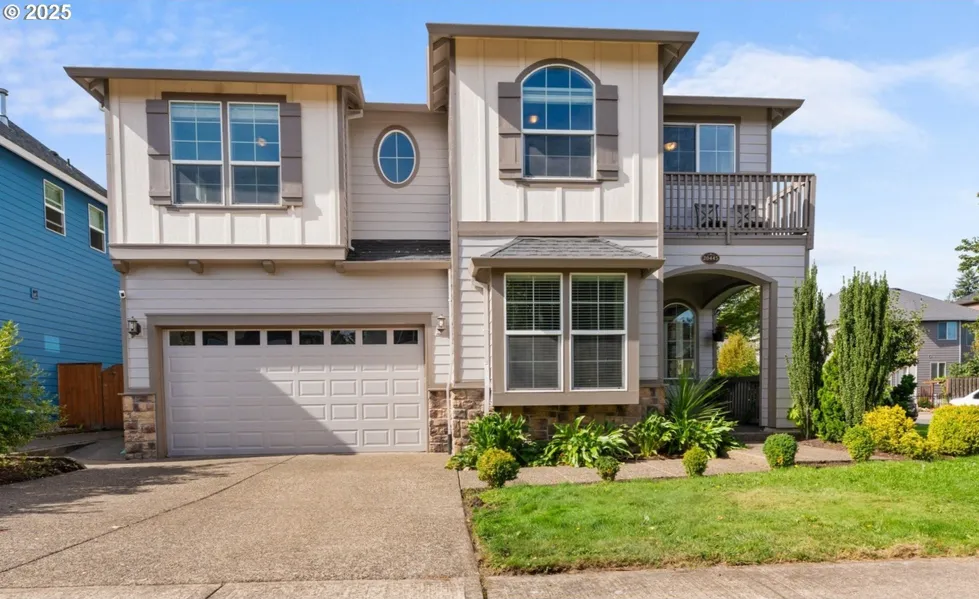 OPEN SUN the 18th. 12-2pm. Beautifully remodeled home with quality finishes and thoughtful updates throughout. Main level features 11-foot ceilings, solid maple hardwood floors, and an open-concept kitchen and family room with gas fireplace. The kitchen includes quartz counters, large island, 5-burner gas range with back vent, convection oven, pantry, soft-close cabinets, wine fridge, and new Samsung refrigerator (2023). The Dining area, nook with patio slider, office with French doors, and half bath complete the main floor. Upstairs offers a primary suite with gas fireplace, coffered ceiling, walk-in closet, and bathroom with jetted tub, double sinks, and separate shower. Four additional bedrooms (one with balcony), a loft with built-ins, and a laundry room with tile flooring, butcher block counters, sink, and storage provide comfort and function. Outdoor features include a covered patio, raised garden beds, turf yard, paver walkways, and a shed. Oversized 2-car garage with tandem space, workbench, upper storage, and 1,200 lb. cable/winch. Fiber cement lap siding and solar panels installed 2021 (transferable loan at 1.9%, $114/mo; avg. electric $16/mo). Walking trail and dog station are down the street. Convenient location near shops, restaurants, and parks.