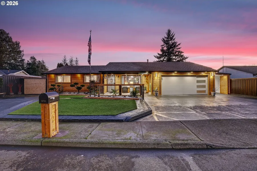 Open Sunday 1:00-3:00. Recent appraisal value $630,000! Extraordinary, accessible, one level home with no stairs at entry! Features include extra detached garage/shop with 220 power, additional covered parking and storage, RV Parking and lots of outdoor living space. This is accessible one level living at its best, no steps to enter house or to go out back to enjoy the patio. Be sure and check out the floor plan to understand all that this property has to offer. Inside the house the gas furnace keeps things comfy while the pellet stove in the family room offers extra warmth and can be controlled by a thermostat. AC unit keeps the house cool in the summer and the AC and furnace have both received regular maintenance. The kitchen has beautiful solid quartz counters, built in microwave, custom pantry cabinet, gas stove and touchless faucet. Consistent, easy to clean, laminate flooring throughout the house. The yard is low maintenance with artificial turf in the front and a patch of real grass in the back. Easy perennials and ornamental grasses will appear in the spring. Both garages have new mid-century style garage doors. Upgraded custom lighting all over the inside and outside of this house. Slider from primary bedroom to covered patio. In addition to the listed house square feet, this home has over 400 square feet of covered patio area, 454 square feet of attached garage space, 318 square feet of detached garage or shop space, additional covered and well lit carport, and other covered work space and storage, 270 square foot enclosure on east side of house, 102 square foot storage shed in back and 169 square feet of flexible space for summer office, studio, home gym. Siding is cedar shake on back and sides of house, tongue and groove red cedar on the front. [Home Energy Score = 3. HES Report