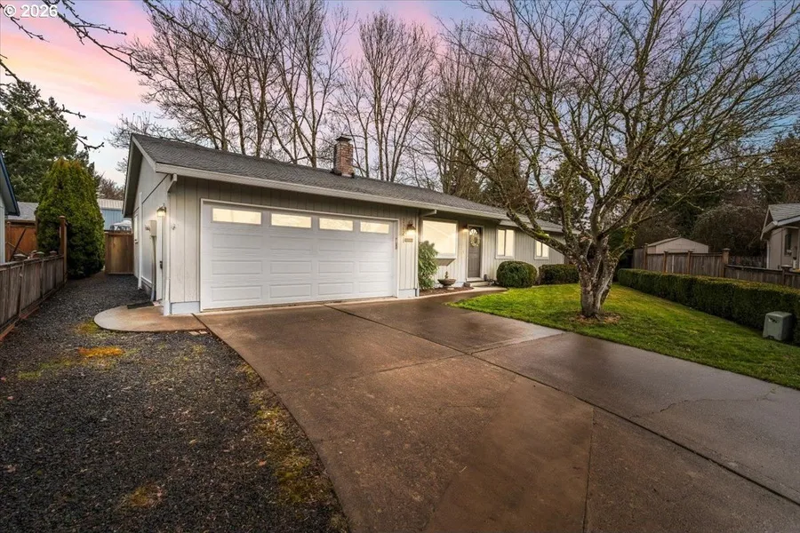 OPEN SAT 1:30-3:30PM! Picture-perfect single-level ranch tucked away on a quiet cul-de-sac, just minutes from schools, shopping, and easy freeway access for a smooth commute. From the moment you arrive, the wide driveway, lush green lawn, mature shrubs, and cheerful blooms create irresistible curb appeal. Step inside to a welcoming entry with rich hardwood floors and a convenient coat closet. The warm and inviting living room is the heart of the home, featuring a cozy wood-burning fireplace, ceiling fan, and a stunning bay window that fills the space with natural light and brings the outdoors in. The charming country kitchen is both functional & delightful, offering a pantry, bright garden window, eat bar, cooktop & built-in microwave - perfect for casual meals or entertaining. Just off the kitchen, the dining area features a glass door that opens to the back deck - your own private retreat for morning coffee and bird watching. A cozy family room with walls of windows provides the perfect spot for movie nights or relaxing with loved ones, with ample space for your comfy sofa & big screen TV. Down the hall, the primary suite offers a large closet and private glass door to the deck - ideal for stepping out to enjoy fresh morning air. The suite connects conveniently to the main bath, complete with a step-in shower, expansive vanity, and solar tube that floods the space with natural light. Two additional spacious bedrooms feature generous closets with organizers and oversized picture windows that make each room feel bright & airy. Outside, the fully fenced backyard is ready for fun and relaxation, boasting a large deck, tool shed, and plenty of room for play, gardening, or summer gatherings. Enjoy all the charm of small-town living - from festive holiday parades to colorful chalk festivals - plus outdoor adventures just a short drive away at Henry Hagg Lake, where fishing, hiking & peaceful scenery await. This sweet ranch checks all the boxes, comfort, charm & location!