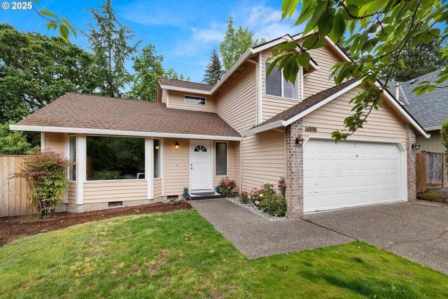 Nestled on a private cul-de-sac in the sought-after Surrey Pines neighborhood, this refreshed and updated two-story traditional-style home offers exceptional value and comfort. Recently remodeled with stylish new flooring, fresh interior paint, and an upgraded kitchen, the home also features a revitalized family room complete with a new hearth and custom fireplace surround. Major systems have been modernized, including a newer roof, furnace, A/C, high-efficiency on-demand water heater, and high quality Milgard windows. The versatile 3-bedroom, 2.5-bath layout includes formal living and dining rooms with vaulted ceilings and large windows, while the open-concept kitchen flows seamlessly into a cozy family room and charming breakfast nook that overlooks the private and serene backyard. Upstairs, you'll find all three bedrooms, including a large primary suite with a distinctive marble-tiled bathroom. Additional highlights include a main-level laundry closet, two-car attached garage, and a large storage/tool shed. The fully fenced backyard is a highlight, featuring a spacious lawn, room for gardening, and a large deck-perfect for entertaining and summer BBQs. Located in a premier spot along Oregon's High Tech Corridor-just minutes from Nike, Intel, and top-rated schools-this home is also within walking distance of three city parks, including the Tualatin Hills Sports Complex and Aquatic Center. It's just a short drive to many popular stores, restaurants, and shopping centers, offering both convenience and a strong sense of community in one perfect package.