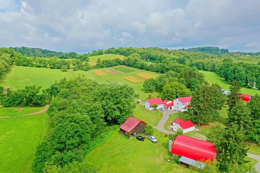 If you want country lifestyle living with the beauty and tranquility of beautiful vistas and rural living with a modern one-of-a-kind home, and yet still be close to the city and shopping, this is the perfect place for you! Set in the rolling hills of Southwest PA, this beautiful elegant upscale country home has been magnificently restored. The kitchen is a luxurious gourmet kitchen with plenty of space for entertaining. The rooms are large and spacious with high ceilings. Among the one-of-a-kind luxury features throughout this home is a first floor master suite with heated floors with a large walk in shower. The farm currently is an income producing certified organic farm with a commercial kitchen where the current owners operate a pickling business. The additional living space above the commercial kitchen and garage is an added bonus and this whole area could easily be turned into an in-law suite. The home and outbuildings all have new metal roofs, and the multiple outbuildings are perfect for livestock and equipment. The outdoor living space is second to none; you will certainly enjoy entertaining beside the pool in this backyard oasis. Structures on the property are as follows, Home, Barn/stables, Garages, Greenhouse, High Tunnel, Spring House, Milk House, Pig Barn, RV Garage. 20 minutes to Pittsburgh International Airport, 35 minutes to downtown Pittsburgh, 25 minutes to Robinson, shopping, restaurants, etc., 10 minutes to Star Lake Amphitheater. A backup generator serves the whole house and outbuildings and geothermal provides the heating and cooling.