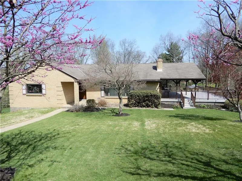 *Enjoy One Level Living!* Spacious 3 bedroom brick ranch home, sundrenched living room with a brick hearth fireplace & custom built-ins, formal dining room, updated eat-in kitchen, main floor master suite and 2 additional bedrooms, huge partially covered patio, walk-out finished game room offers a den/4th bedroom & full bath, 2 car garage, great rear yard, newer windows & doors, conveniently located to Rte 19, schools, shopping, walking trail, entertainment & more! Home Warranty Included!