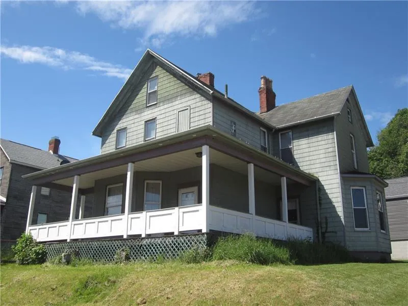 Once a duplex, this magestic victorian-style home has hidden treasures throughout. The eat-in kitchen is big enough to dance in and there is an amazing diningroom with bow-style windows and decorative fireplace. Previous tenants used the dining room as an additional bedroom. Up to you. There is a ceramic 1st floor full bath with laundry facilities. Up the steps, you will find 3 huge bedrooms with 2 decorative fireplaces. The full bath also has steps to a walk-up attic. If you love the river, it's just a few blocks away. The sounds of the tug boats is so mesmerizing. The sound of the train traveling through town is soothing. There is a nice size basement for storage. The country front porch is wonderful for relaxing. Your new home is just around the bend from the Expressway, Mon Valley Hsp and just 5 minutes from Interstate 70. You are just 20 minutes from the PA Turnpike. If you've always wanted space, this 2,000+sq foot.
