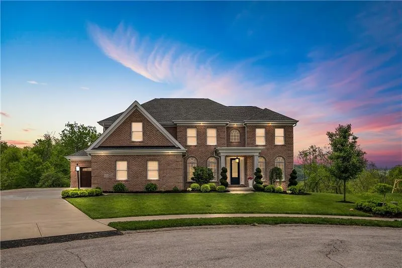 A truly stunning custom classic brick home in the South Fayette School District. With thoughtfully designed and beautifully finished living space, this home features a friendly open floorplan with natural light, craftsmanship, and luxury finishes. The spacious white glazed gourmet kitchen has quartz countertops and backsplash, a Stainless Steel appliance package, a large eating area, and access to a composite deck overlooking the manicured rear lot. The main floor is completed with a private office and formal dining room. Upstairs an elegant master with a designer ensuite bath and two walk-in closets. Three additional bedrooms and 2 full baths plus a convenient laundry room complete this level. The ground-level walk-out basement has french doors to a stone patio, fitness area, and tons of storage. Three-car attached garage and exterior soffit lighting with updated landscaping make this gorgeous home complete.