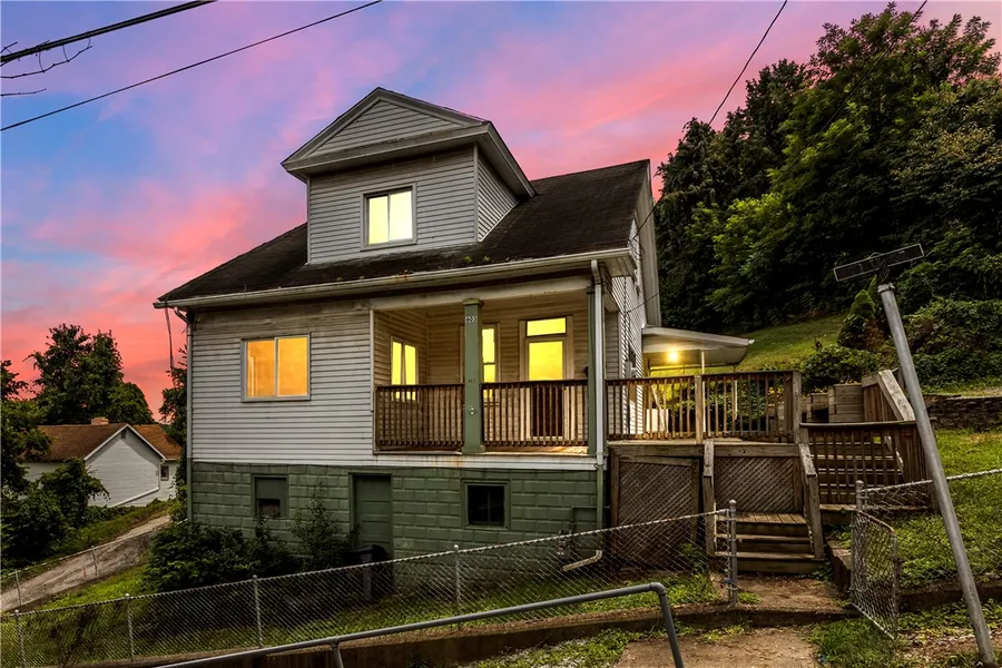 Step into this expansive 1 1l2 story Cape Cod located in Charleroi. It has a nice wrap-around deck with spacious partially fended yard including an additional adjacent quarter-acre lot. Equipped kitchen includes a stove and fridge. Right off the kitchen is a designated full-size laundry room with a pantry and plenty of shelving. The home includes a formal dining room w/intricate exposed cedar woodwork on the ceiling & trim. Off the living room is an additional room that can be used as a den area or third bedroom. Step upstairs with 2 additional bedrooms. The master bedroom is very spacious with dual closet and even a corner perfect for a sitting area or nursery space. The second bedroom has built-in shelving perfect for tv/gaming & even a built-in desk. Don't forget to check out the finished basement with a wet bar & pool table included. It also has a functioning pellet burner & a dry room off of it for more storage. There is a workshop area and half a bathroom in bsmt as well.