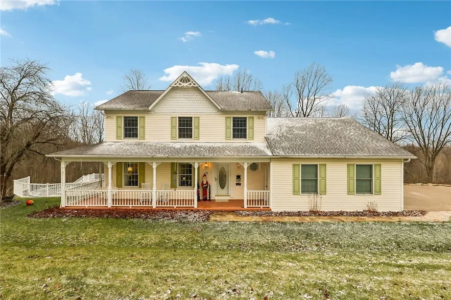 Lovingly maintained by its original owner, this charming home sits on 1.9 acres in a peaceful country setting. Recent updates include a new roof, deck, and HVAC system, offering comfort and peace of mind. The home features 3 bedrooms, 2.5 baths, and a 2-car attached garage with an exposed aggregate driveway. A beautifully updated kitchen showcases a large island, quartz countertops, and new stainless steel appliances, opening to a welcoming living room with a cozy flagstone fireplace. A formal living room just off the dining room provides additional space for gatherings. Hardwood and bamboo flooring flow throughout the main level. The spacious primary suite offers a walk-in closet and a tastefully updated bath with a walk-in shower and dual marble vanity. Step outside to enjoy quiet country living with a heated swimming pool, expansive back deck, and a charming covered front porch perfect for relaxing and taking in the scenic views.