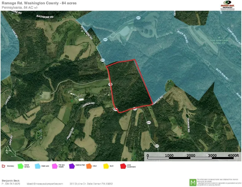 83 +/- acres for sale in Washington County, Pennsylvania. Situated along State Route 231, this 83 acre property is a rare find! The land consists of heavy cover with a mix of oaks, maple and poplar. Herbaceous plants (wildflowers) and understory woodland shrubs are abundant indicating a healthy woodland. The topography is typical Washington County ridge tops, hillside and valleys. There is over 3,800' of road frontage State Rout 231 and Ramage Rd. This property will make an excellent appreciating asset and is ideal for hunting, recreation, etc. This is also an ideal choice to build a second home or even your permanent residence. The property is conveniently located just 4 miles North of Interstate 70, and 15 miles from either Washington, PA or Wheeling WV. State Game Lands 232 borders the property to the East. Annual taxes are approximately $132. Mineral rights are reserved. Do not miss this opportunity! Properties like this are becoming hard to acquire and sell very fast in todays land market.