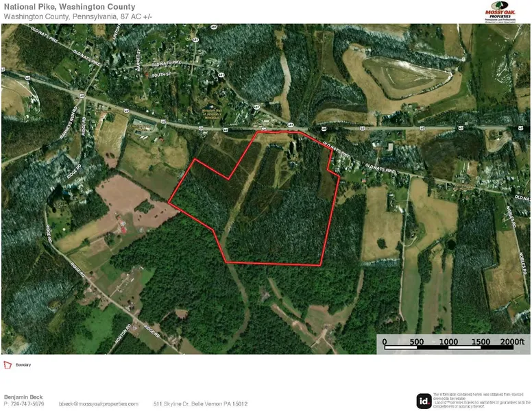 87+/- acres of prime real estate, located off Route 40 on the border of West Brownsville and Centerville, Washington County, PA. This historic homestead is nestled at the end of a private drive, overlooking the valley and farm fields. This property is highlighted by exceptional fields, wild apple trees, brushy timbered draws and 1,000 +/- feet of road frontage along Route 40 and Old National Pike. The farmhouse has not been lived in for over 10 years and is being sold as is.