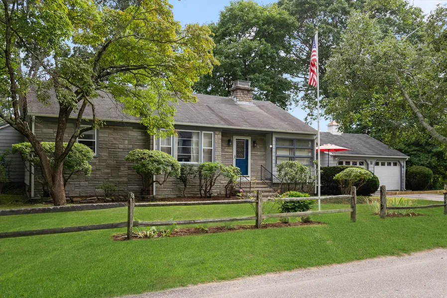 Welcome to this 3 bed, 2 bath ranch meticulously maintained by original owner. Lovely great room with beamed ceilings and beautiful stone fireplace. Sweet kitchen opens to dining room and a light filled sunroom, also with a stone fireplace. Private, primary bedroom suite with full bath is spacious with sliders to awninged deck overlooking private back yard. The home offers 2 additional bedrooms and a guest bath as well. Attached garage is an oversized 2 car with direct entry into completely enclosed breezeway or mud room. A full basement provides ample storage or expansion possibilities. The home is sited on a large 15,000+ sq ft lot and is walking distance to Pettaquamscutt Lake Shores Beach and Beach Club and just 5 miles to the Narragansett Town Beach. New furnace. Ductless Air. Town water and sewer too!