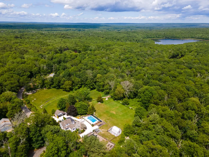 Welcome to Owls Nest... Beyond the handcrafted stone walls and wooden gates adorned with silhouettes of owls lies a unique and special retreat. Sited on just under seven acres, with fields, meadows, and trails meandering through the woods, this home, grounds, and outbuildings have been curated into an exceptional experience in living well. The main house was originally built in 1851, and the best vestiges of the past remain in the hand-hewn beams, wide plank floors, and stone fireplace. Updates were made with care and artistry, from the whimsical wallpaper and custom window treatments to pocket doors and bespoke tilework. Outside, a crushed shell wraparound driveway and expansive patios with detailed stonework are bordered by a lush landscape with native trees and specimen plantings. To one side of the house, a garage space has been converted into a studio ideal for making art or practicing yoga, with a loft above, and to the other side, a barn and fenced pasture neighbor the raised beds and garden space. An inground swimming pool takes advantage of the sunniest central location behind the house, while meadows and stone walls stretch out to the edges of the woods. Venture onto the extensive network of private trails to explore a cleared pine grove, steep hills, a cascading brook, and nearby ponds. For those seeking a tranquil life in an inspiring home among the mountain laurel and wildlife, the wait is over.