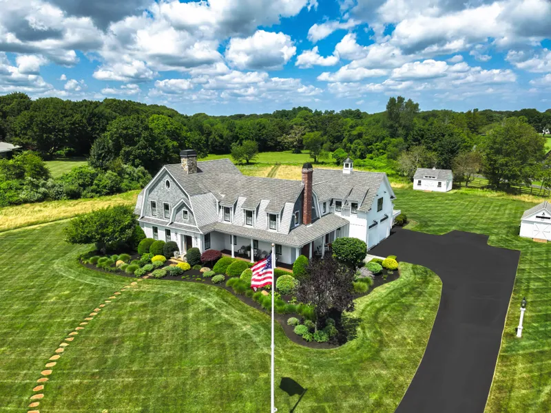Introducing an estate parcel unlike any other in RI! This coastal retreat offers panoramic views in every direction and provides a sanctuary for those seeking tranquility & natural beauty. Privacy abounds on 3 pastoral acres & adjoining conservation land in much sought-after Fletcher Meadows. Custom built and like new; no detail has been overlooked in elevating this 11-years-young property to the highest level. Impeccably-appointed with exquisite choices of lighting, fixtures & finishes this farmhouse colonial offers superior design & master craftsmanship. The expansive kitchen features custom cabinetry, chef's kitchen & breakfast nook. Throughout the home oversized windows unite the indoor & outdoor spaces offering views of the lawn, gardens and meadows while inviting in abundant natural light. The primary en suite is the epitome of serenity, offering privacy, a spa-like bath, walk-in closet and views of the natural setting. With 5 bedrooms, 3 full & 2 half bathrooms, there is more than enough room for family and guests. On the lower level, generous & refined finished space includes a gym, bar & recreation area perfect for movie nights. Outdoor entertaining spaces abound, from the inviting front porch to the bluestone patio with fieldstone fireplace to view sunset skies. Neighborhood access to the bike path along Allen's Harbor. Minutes away from Wickford & East Greenwich waterfront, shops & restaurants. Casual luxury beyond the imagination!