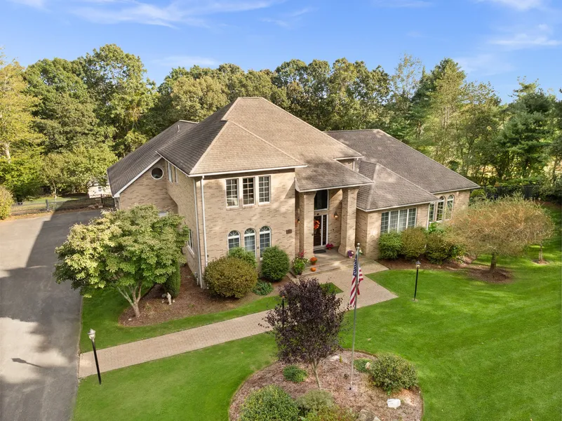 Come home today to this elegant and distinctive brick colonial set on a private and serene 3.46 acres now showcasing its FRESH NEW LOOK AND FEEL!! The addition of light colored paint throughout the first floor opens up the space and invites you in. The new lighting and backsplash tiling in the kitchen brings a contemporary flair. And the white furniture in the main living spaces highlights the hardwood floors, adding stylish elegance and grace to the home. The first floor primary ensuite is a plus for all buyers and offers a fireplace for cold winter nights relaxation, a tiled step-in shower and a soaking tub. The thoughtfully planned open layout is perfect for entertaining especially with the oversized outdoor patio sitting between the family room and inground pool....resort luxury for you and your guests. The second floor offers three more bedrooms, a full bath and an oversized bon...