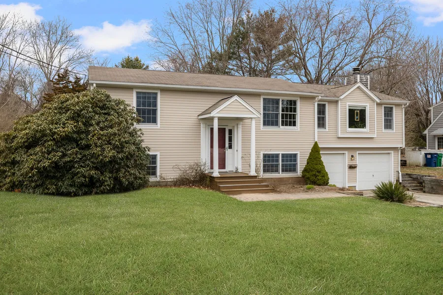 Welcome to this cherished residence nestled on over half an acre of serene land on a peaceful dead-end street off Tuckertown Road. Just a short stroll from Tuckertown Park, this well-maintained home offers the perfect blend of space, comfort, and functionality. The heart of this home is its stunning oversized living room, where cathedral ceilings and large windows create an atmosphere filled with natural light. Custom-built-ins and gleaming hardwood floors complement the cozy wood-burning fireplace, making this space perfect for both relaxation and entertaining. Thoughtfully designed pocket doors lead to the island kitchen and dining area, while a slider opens to the rear deck an ideal spot for outdoor living and entertaining. The backyard creates a private space that feels even more expansive than its generous dimensions suggest. Inside, the home's layout includes three bedrooms plus an office, with two bedrooms/office on each level, accompanied by a full bathroom on each floor. The lower level features a convenient laundry room plus a separate utility space, while an integral two-car garage offers additional storage space. Recent improvements include a new three-bedroom septic system installed in 2019, rear and left side siding replacement, plus replacement of many windows. The home is served by town water and oil heat. Lovingly maintained by its long-term owners, this special property now awaits its next chapter with new owners who will appreciate all it has to offer!
