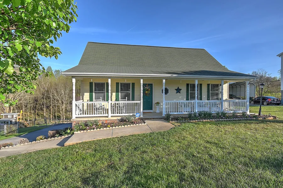 Open floor plan and vaulted ceilings with this affordable four bedroom, 2 bath home in Fall Branch. Convenient to Kingsport, Jonesborough and Greeneville. New flooring and interior paint. Lots of room for your stuff with eave storage, extra closets and a full unfinished drive under basement. Enjoy the above ground pool with ample deck space for sunning and your picnic table. Roof was replaced in 2013. Outside heat pump replaced in 2014. Living room fireplace stays.