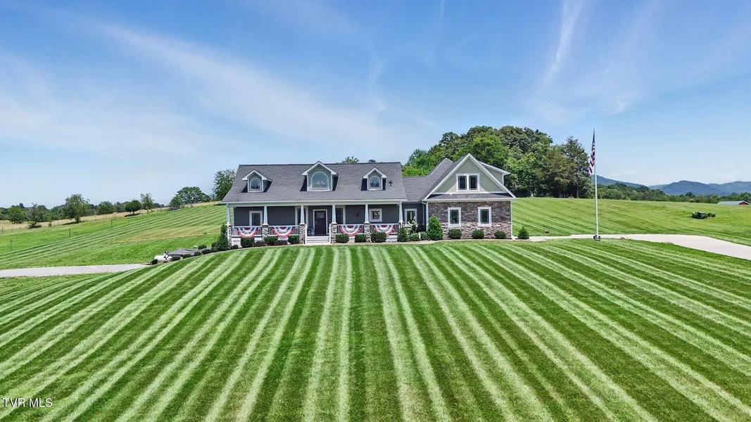 Welcome to 313 Treadway Trail, a stunning custom built home situated on 4.86 +/- level acres in the heart of Jonesborough. Built in 2019, this exceptional property offers over 5,900 + square feet of total space, with 3,462 +/- square feet of finished living area and an additional 2,502 +/- square feet of unfinished basement, providing endless opportunities for expansion or storage. From the moment you arrive, you'll appreciate the private, scenic setting and the mountain views that surround the property. The interior boasts beautiful hardwood floors, oversized windows that flood the home with natural light, and a seamless open-concept layout ideal for both everyday living and entertaining. The living room features a beautifully designed stone fireplace that anchors the space, while the gourmet kitchen offers granite countertops, stainless steel appliances, and custom cabinetry. The spacious primary suite offers a spa-like retreat with double vanities, a walk-in shower, and a large walk-in closet. Not to mention plumbing is in place for adding a soaking tub! Additional rooms include a heated sunroom with panoramic views, a dedicated bonus or recreation room with a full bathroom offering comfort and flexibility throughout the home. The unfinished basement provides over 2,500+ square feet of potential, for storage space, workshop with 220v power, or could be finished into more living space. The home features a total of three car garages, covered back deck with stone fireplace and a long private drive with beautifully maintained landscaping. With public water, a septic system, and no HOA restrictions, this property combines modern comfort with rural freedom. Located just minutes from Lamar School and David Crockett High School, and only a short drive to downtown Jonesborough, this home blends luxury, privacy, and convenience in one of East Tennessee's most desirable settings. Buyer/buyers agent to verify all info.