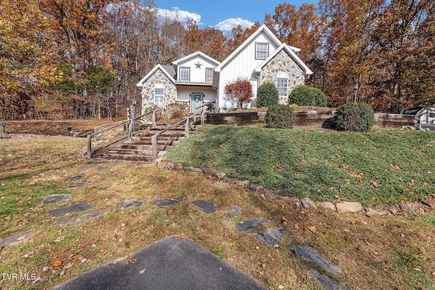**Welcome to your private retreat near Boone Lake!**Situated on 4 beautiful acres, this unique home offers the perfect blend of privacy and convenience. As you drive up, you'll be greeted by a park-like setting with the home nestled gracefully on a hill. The property features multiple cleared, level areas ideal for play, parking, or projects surrounded by peaceful natural beauty. From the moment you arrive, this home's charm is unmistakable. Stone walkways, wood accents, a striking stone staircase, and a gorgeous fireplace all add to its distinctive character and curb appeal. Inside, the main level features an open and inviting living area with a cozy nook that could serve as additional seating or a dining space. In the kitchen, a charming two-seater island and sleek new quartz countertops create a welcoming space for everyday living and easy entertaining. A bright sunroom provides the perfect dining area with views of the surrounding nature. The main level primary suite is a true retreat, complete with a spacious ensuite bath, walk-in closet, and private walkout to the back deck ideal for morning coffee or relaxing evenings outdoors. The custom staircase is a true showpiece an impressive architectural feature that immediately catches the eye. Upstairs, a charming balcony overlooks the main living area, adding an open and airy feel. You'll also find a convenient built-in desk area, perfect for homework or a home office setup. The upper level offers an adorable bedroom with its own private back balcony, a spacious bonus room (or additional bedroom), a full bathroom and another large bedroom. The same beautiful hardwood floors from below flow through most of the upper level, adding warmth and character throughout. The basement level provides incredible versatility with a finished area featuring new luxury vinyl flooring, a full bathroom, and a large closet ideal for a guest suite, recreation room, or home gym. Off the finished space, there's access to the unfinished basement offering ample storage and workspace options with a garage door for easy access outdoors. Outdoors, you'll find even more to love. Enjoy the back deck with Trex decking, a storage shed, and a playground ready for hours of fun. For those who appreciate the beauty of nature, there's a moderate hiking trail that winds around the property. At the top of the hill, relax on the swing and take in the breathtaking views of the surrounding farmland the perfect spot to unwind and enjoy the peace of country living. You are sure to spot some wildlife enjoying the space as well. This one-of-a-kind property combines rustic charm, thoughtful updates, and a truly serene setting all just minutes from Boone Lake and local conveniences. **Schedule your private showing today and experience this special home for yourself!**All information to be verified by the buyer/buyer agent.
