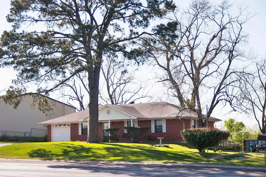Brenham Residential or Commercial. Well cared for 1 story 1258 SF. brick home with 3 Bedrooms, 1 Bath, and 1 car garage on 0.46 acres. New Roof. 16X26 and 9X14 storage buildings in back. Zoned B2 - Commercial, Research and Technology on HWY 105.