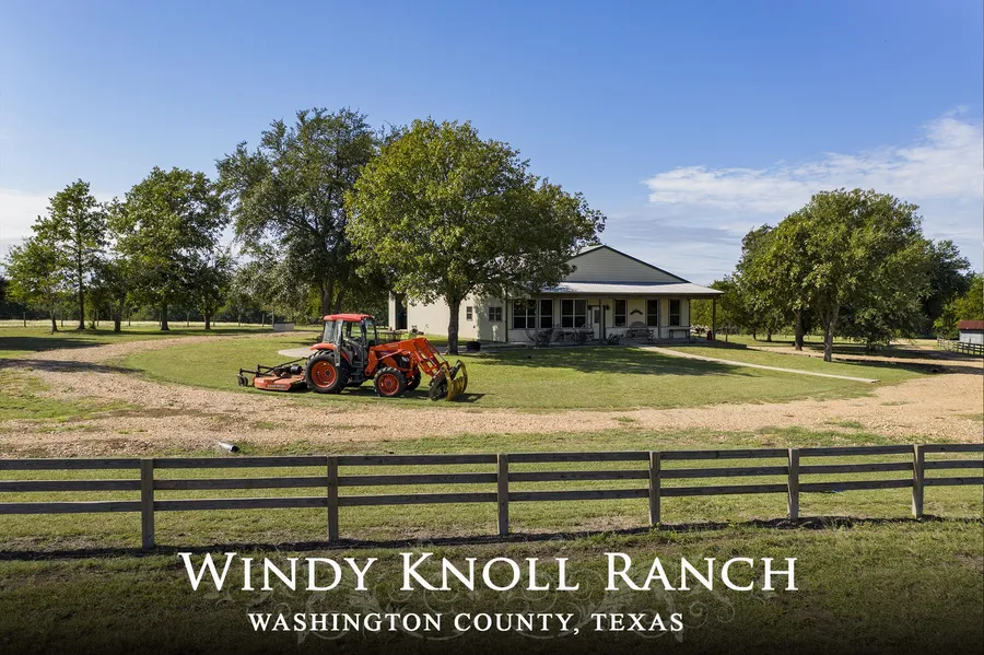 This meticulously designed and well-maintained +/-109.49 acre property is a MUST SEE! Featuring high hills, views, and amazing sunsets, this property is perfect for weekend getaways, family holidays, or for a permanent residence that is move-in ready. The entrance leads you up a small hill to an electric gate that sends you down across a wooded creek, through pastures that then takes you to the top of a large hill to the site of the barndominium. This efficient and tastefully designed home features three bedrooms, including a master en-suite with a tub/shower combination, an additional full bath and large open-concept living, dining and great room space. The kitchen features ample storage, a large custom-made island constructed of reclaimed wood found on the property, gas range/stove, and dishwasher. A short hall past the large pantry and utility room opens into the shop area where a climate-controlled half bath is found to the left. The shop consists 1512 sq. ft. with a roll up door at one end and an electric garage door at the other. Additionally, adjacent to the wide front porch is a large patio area of 1100 sq. ft. which is a great place to relax and admire the continuous breezes and peacefulness of the country living of Windy Knoll. The areas of woods near the stocked pond are accessed by wide trails perfect for horses or four-wheelers. The pond features a wooden walk-out deck that has running water and electricity for convenience. The pastures are improved grasses and presently grazed for cattle. Enjoy the ease and solitude of your surroundings and the convenience of being minutes from Brenham.