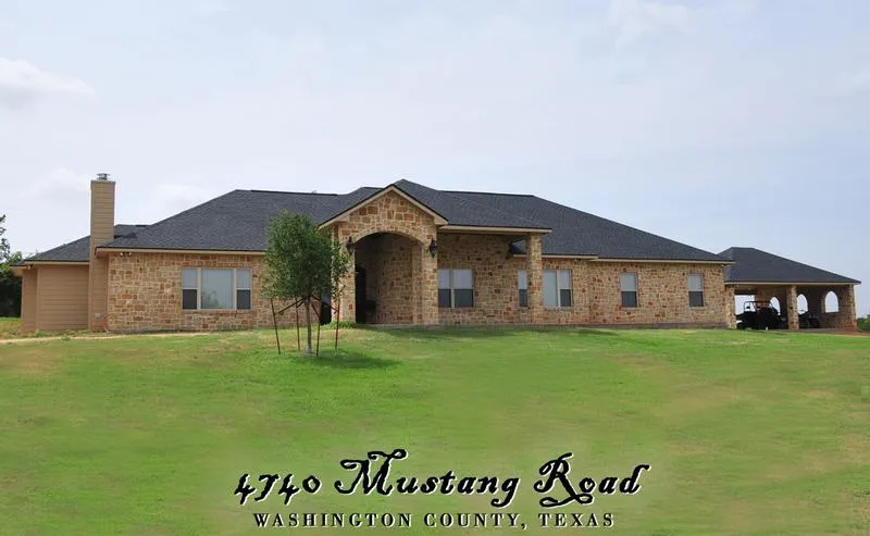 A true Country Paradise. Located a couple miles outside the city limits of Brenham this newly constructed executive home sits on 25.765 acres and offers all the joys of country living without sacrificing any conveniences of living in town. The 3 bedroom 4 bath Austin Stone rock home sits hilltop for long distant views of the countryside. The home was completed in February 2009 and offers 4048 sq. ft. of living space. The floor plan is an open concept, great for entertaining family and friends. Upon entering the home you are greeted by the towering gables and custom front doors. The living area and kitchen flow together seamlessly and are accented with granite countertops stainless steel appliances, custom cabinetry, built-ins, rock columns and a rock fireplace. The master suite is oversized with windows taking in the views and a cozy fireplace. The master bath is a place you might not want to leave with the walk in shower that has 3 shower heads to that give ultimate hydro therapy experience, also included are a large master closet, double vanities and a whirlpool tub.