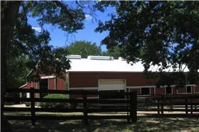 The big red barn has approx. 2,233sf plus horse stalls, and working pens. The barn has large tall doors to accomodate tractors, implements, etc. Property is fenced and cross-fenced. There