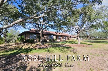 Approx. 27 beautiful acres offering beautiful countryside views, scattered mature trees and private home site. Drive thru the automatic gated entry up the drive to the custom one-owner home. Truly immaculate condition offering +/-1858 SF with three bedroom, two and a half baths and two car side entry garage. Large living area with fireplace, built-ins and vaulted ceilings, spacious master suite with fireplace, large master bath, kitchen open to dining area, oversized utility room with room for a freezer or additional storage. The home is move-in ready with many features and updates, including: replaced roof (2007), central vacuum system, full brick surround, spacious front and back porch/patio, fresh landscaping, new crushed granite walkways and more. Seller will include all appliances in the sale, including washer and dryer. Property boasts a variety of mature trees and potential pond site, paved road frontage on two sides and seller will convey all owned minerals. Also features +/-1631 SF airplane hanger/shop on concrete slabideal for whatever your needs may be. Ideal location between Brenham and Chappell Hill with easy access to Hwy 290 for Houston commute.