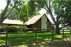 Custom Stone & Cedar home on hill set back from road and surrounded by trees and lush landscaping. All living areas downstairs except the open loft gameroom upstairs. Great open floor plan with high ceilings, lots of custom built-ins, attached oversized two car garage PLUS another building with two car garage, air conditioned hobby room, storage room, shop area and feed room. Wonderful patio area. Back pasture fenced for your 4H project.
