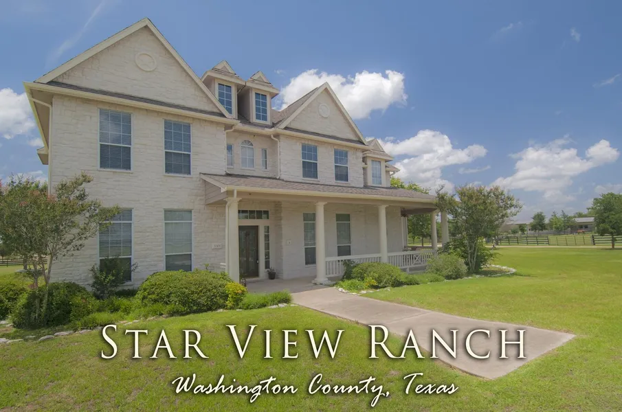 Beautiful custom stone home built in 2000, situated on +/-18.8 acres. Home features +/-4010 SF with five bedrooms, three and a half baths, large island kitchen, large formal dining with stone accents, media room and office. Custom features throughout this home with high ceilings, granite countertops in kitchen with lots of cabinets, stone fireplace, master suite with private access to back patio, large bedrooms and great closet space. Wonderful entertaining area with views of the countryside. Three car detached garage and carport, four-stall barn with full bath and separate room for possible living quarters, pipe arena, pipe round pen and board fencing. Located near Washington on the Brazos on paved road frontage with circle drive and peaceful setting.
