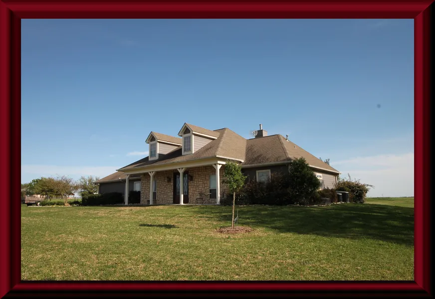 Natural light exudes from the large expanses of windows across the living room, opening into the pergola covered patio. The gas log fireplace (with granite trim) is switch operated, convenient for those cozy country nights! A media-closet just off the living room provides a tidy space for plugs and su...
